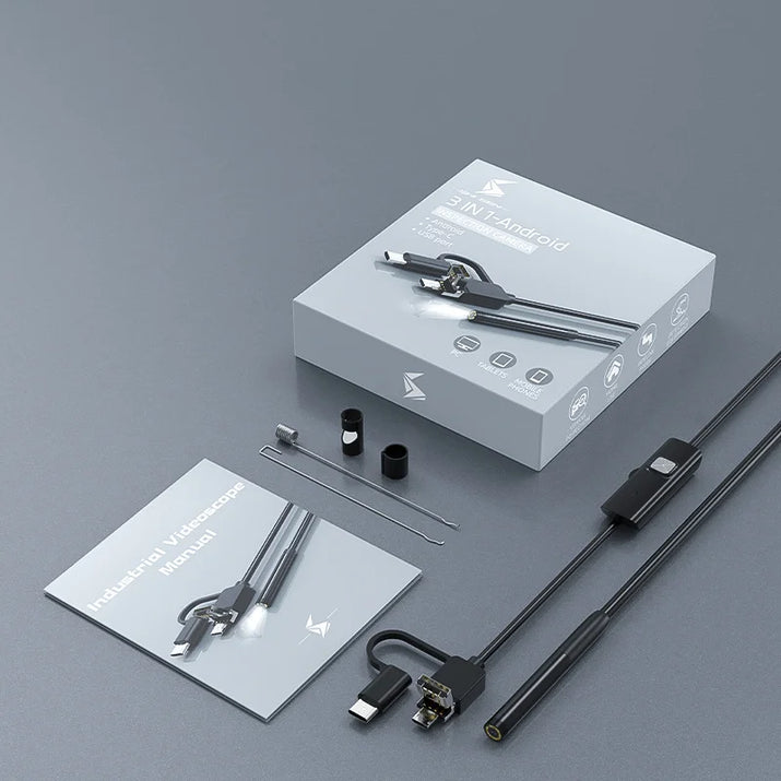 3 In 1 Automotive Boroscope Camera 1080p HD 8mm Soft Hard Wire Inspection Endoscope Camera Pipeline Car Engine Probe For Android